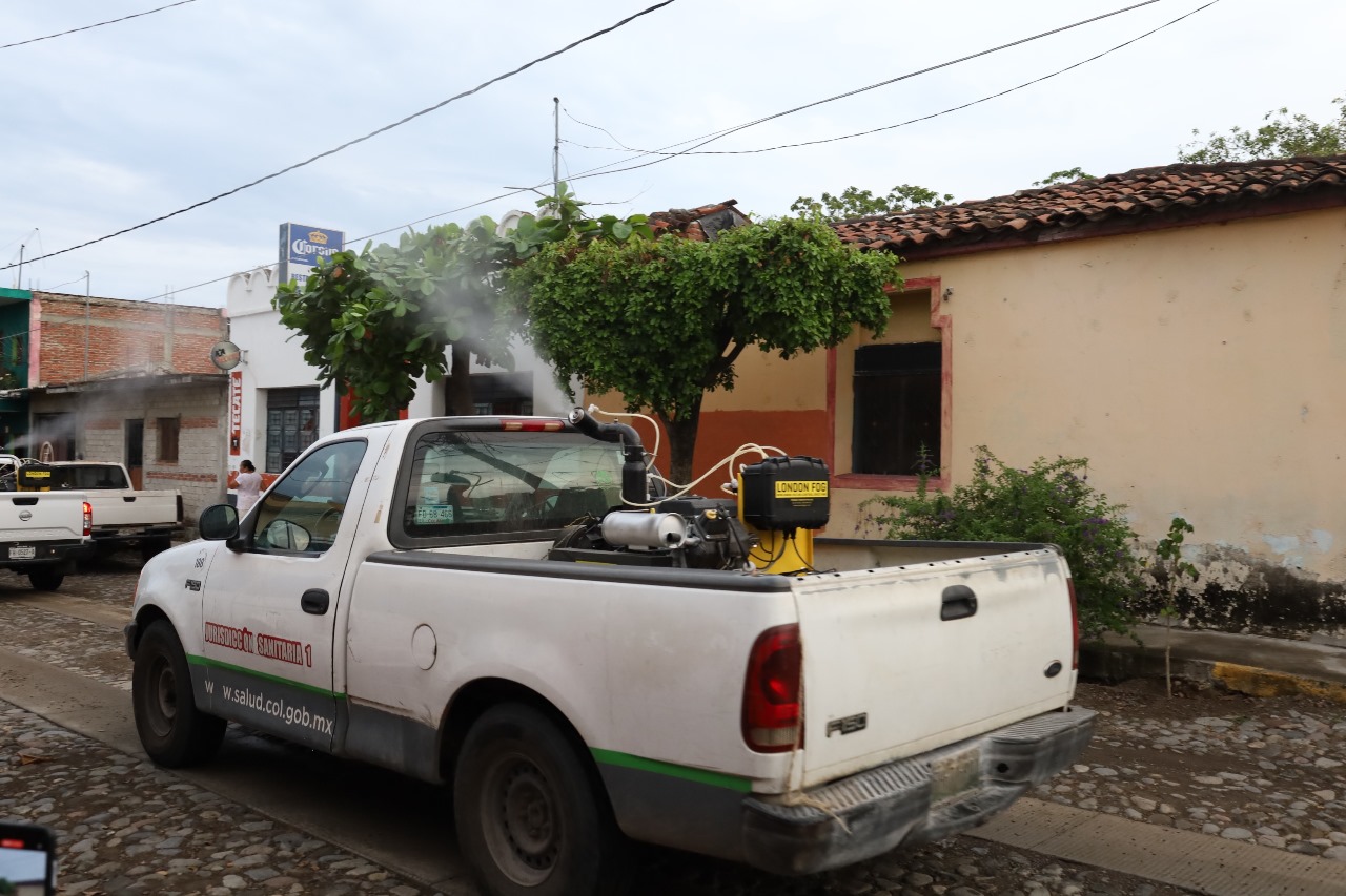 Esta fumigación, para disminuir la densidad del mosco transmisor y el riesgo de infectar a la población, se realiza este lunes en la localidad de Lázaro Cárdenas (Armería) y colonias del mismo municipio armeritense, como El Pelillo, Valle del Sol, Independencia, Ferrocarril, Emiliano Zapata, Campanario, Ejido, Torres Quintero, Linda Vista y la zona centro de Armería.