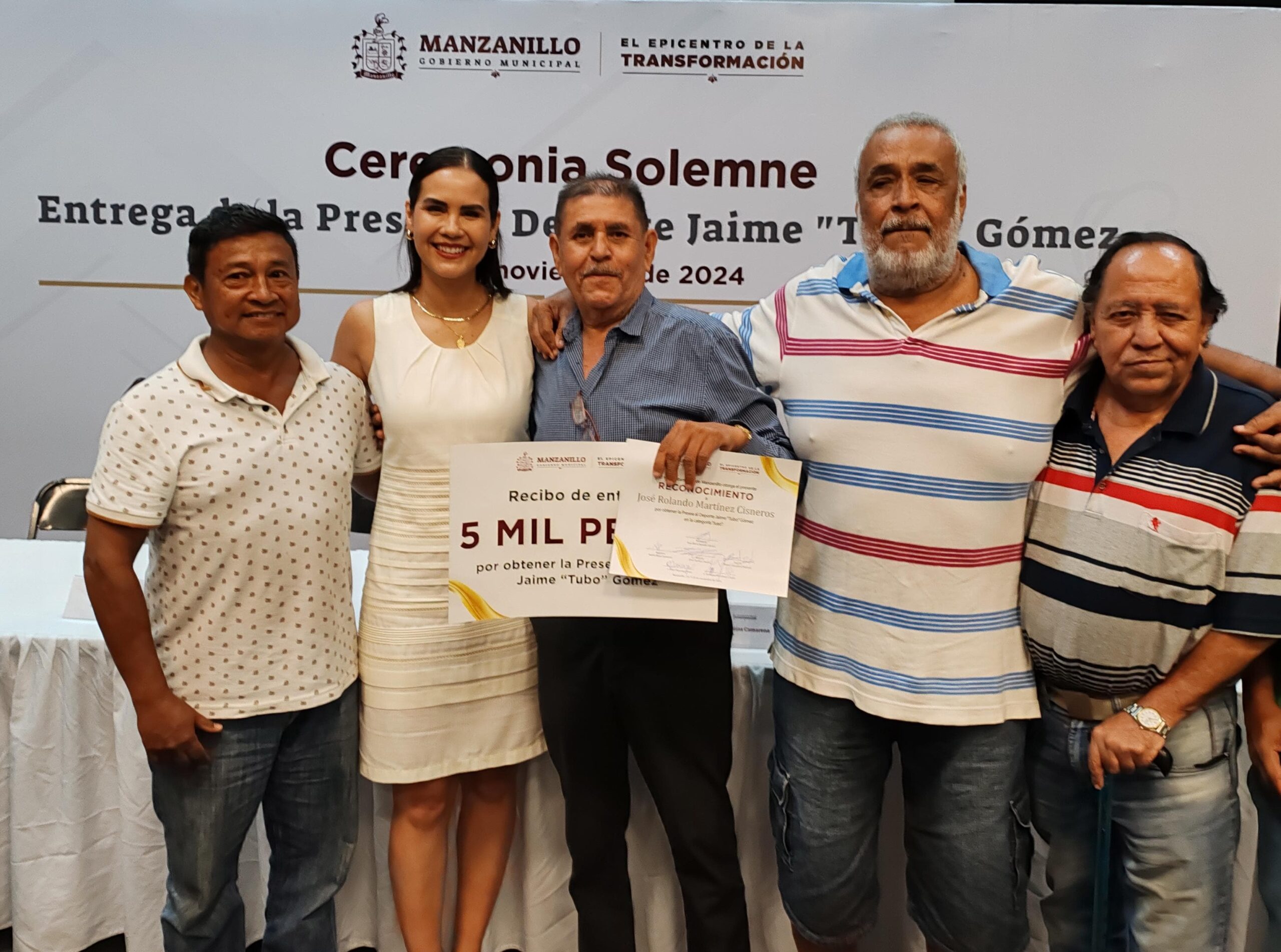 En una emotiva ceremonia encabezada por la presidenta municipal de Manzanillo, Rosa María Bayardo Cabrera, se retomó la entrega de la Presea al Deporte Jaime “Tubo” Gómez, un reconocimiento que premia la constancia, el talento y el impulso al deporte en el municipio.