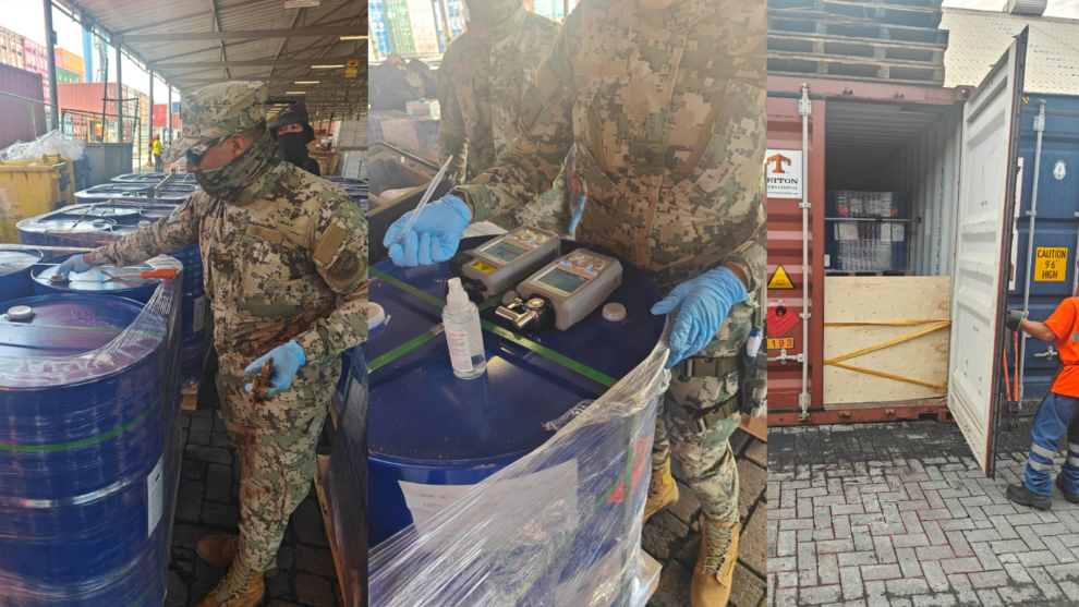 Cabe destacar, que esta acción se llevó a cabo cuando personal naval, en coordinación con elementos de la Aduana Marítima, detectaron y efectuaron inspección a un contenedor, el cual contenía precursores químicos, mismos que no contaban con los permisos necesarios para su legal importación.