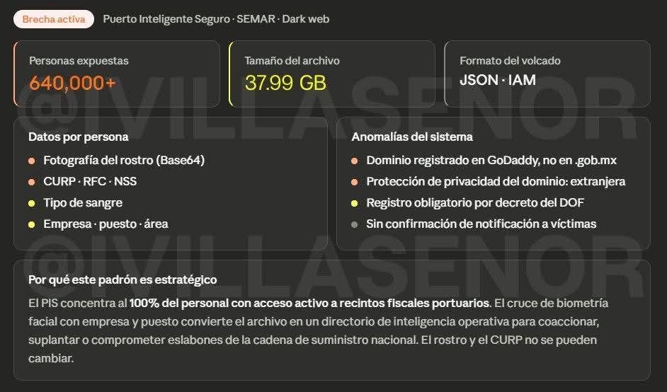 Una presunta vulneración a la plataforma Puerto Inteligente Seguro (PIS), utilizada por la Secretaría de Marina (SEMAR) para el control de accesos en los puertos del país, habría expuesto información sensible de más de 640 mil trabajadores del sector portuario en México.